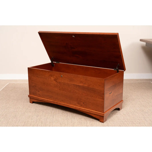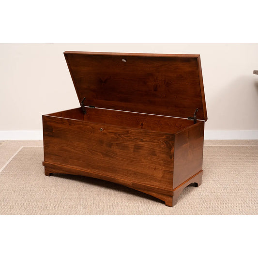 Our chest sizes range from 36" to 46" in length. Each item is handcrafted by Amish woodworkers with careful attention to detail that results in a sturdy piece. Each timeless chest is built to heirloom quality.