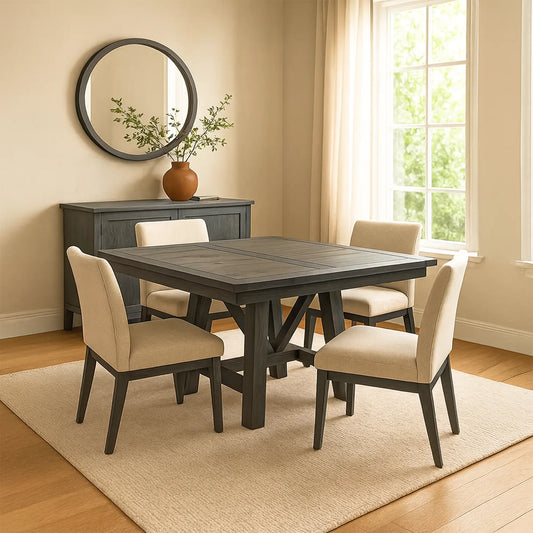 Our selection of solid wood extendable dining tables has various options for you to choose from. In terms of wood, you can find tables made of solid reclaimed barnwood, quarter-sawn oak, rustic cherry wood, and more.