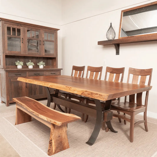 Live edge dining room tables have a simple way of capturing your attention in an effortless manner and are a customer favorite for a reason. Having a natural edge welcomes and invites your family and guests to join and stay awhile. The captivating details are sure to draw everyone in. Read More
