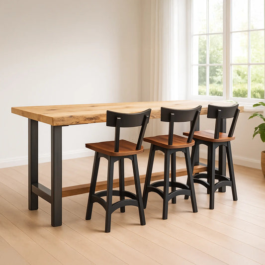 The beautiful, natural edge not only appears rustic, but it also feels that way too. When a wood slab is cut, each piece produces its own exclusive and unique qualities. You can shop for one that's already made or get one custom-made! Live edge tables do not have an option for leaves; however, you can choose a large enough size so that everyone has easy access to a seat at the table!