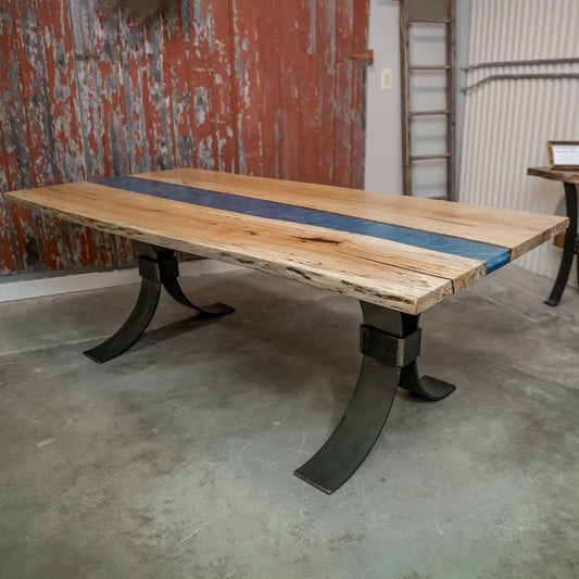 Currently, we offer live edge spalted maple and walnut dining tables. Choose dimensions, epoxy, base, and base color!