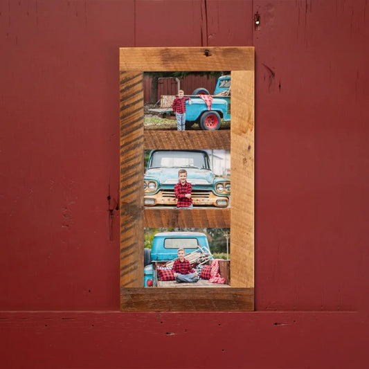 Reclaimed Wood Picture Frame, 3 Openings, 20 x 10