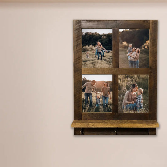 Reclaimed Wood 4 Pane Picture Frame Shelf with Hooks
