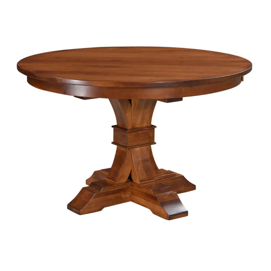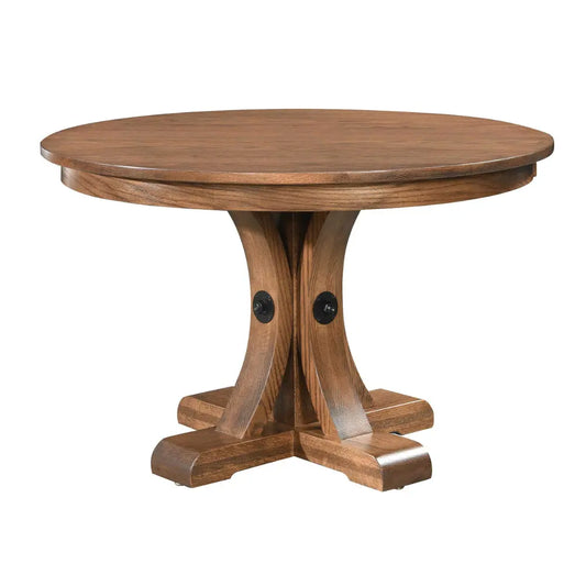 Here, you can find brown maple, spalted maple, reclaimed wood round tables and more with various bases. From a steel flared pedestal base to a solid wood pedestal base, you can choose the one that matches your home. Can opt for a drop leaf for an extendable dining table. All tables other than our live-edge tables have the option of adding middle leaves or breadboard extensions.