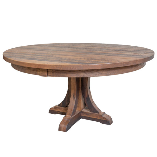 Here, you can find brown maple, spalted maple, reclaimed wood round tables and more with various bases. From a steel flared pedestal base to a solid wood pedestal base, you can choose the one that matches your home. Can opt for a drop leaf for an extendable dining table. All tables other than our live-edge tables have the option of adding middle leaves or breadboard extensions.