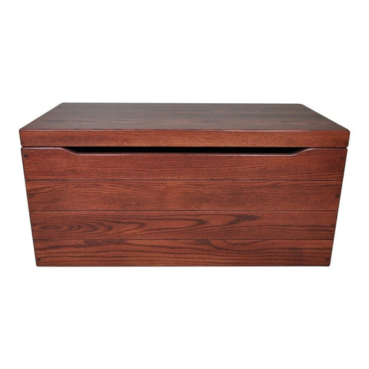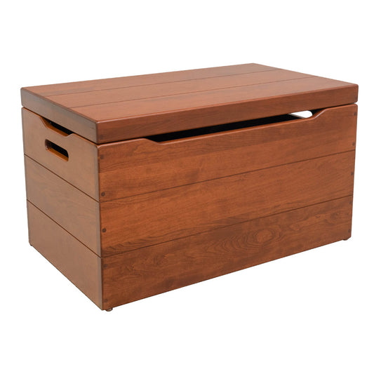 Our blanket chests or toy boxes are available in Oak, Rustic Cherry, and Cherry Wood, ranging from 24" to 36" in length. Some include side handles, and all of these trunks have anti-slam hinges to prevent accidents.
