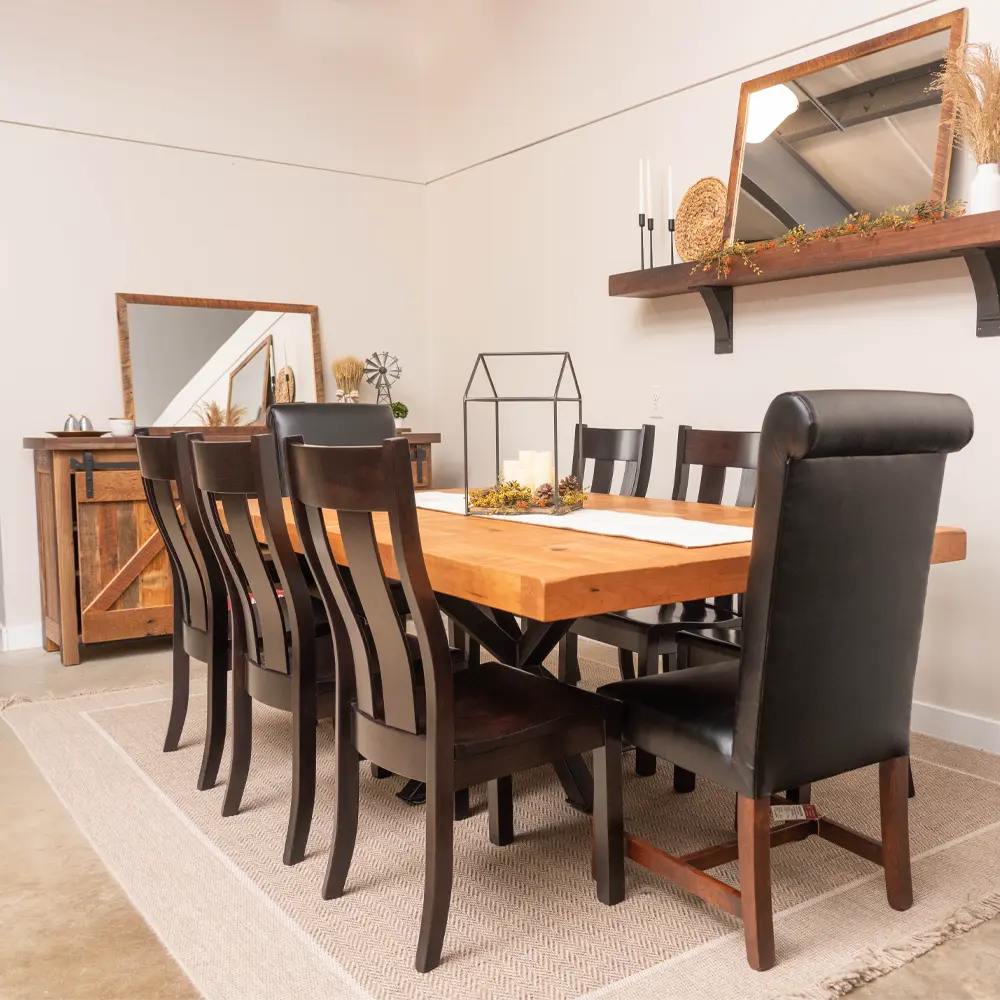 This farmhouse table is not complete until you've added chairs! Shop our indoor dining chair options here. Make sure to get extra for guests!