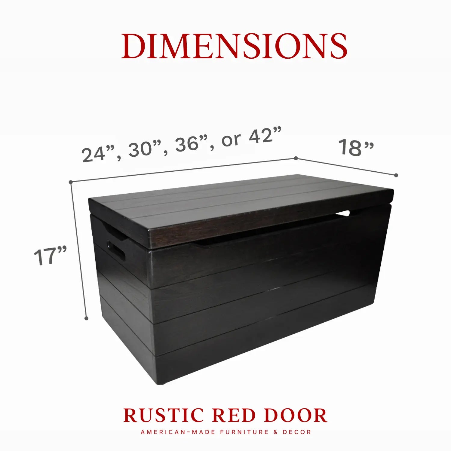 This beautiful solid oak blanket chest is stained in a rich, neutral shade of black (Onyx) and protected with a pre-catalyzed polyurethane.