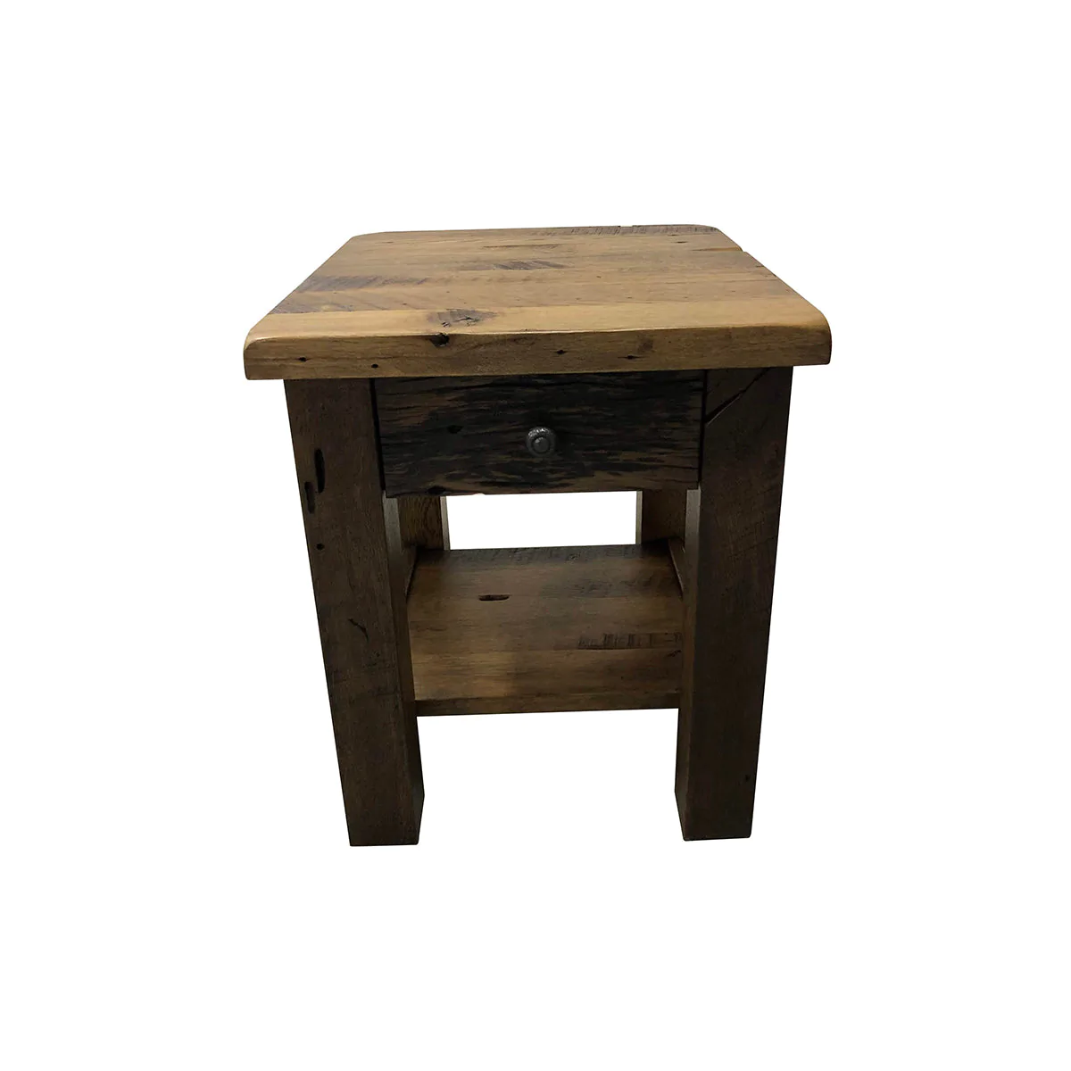 This end table is created from solid reclaimed oak wood. We've added a murky finish to deepen the color while accentuating the features of the wood to create a true rustic style. Last, we coat the furniture in pre-catalyzed polyurethane to protect it for years to come.