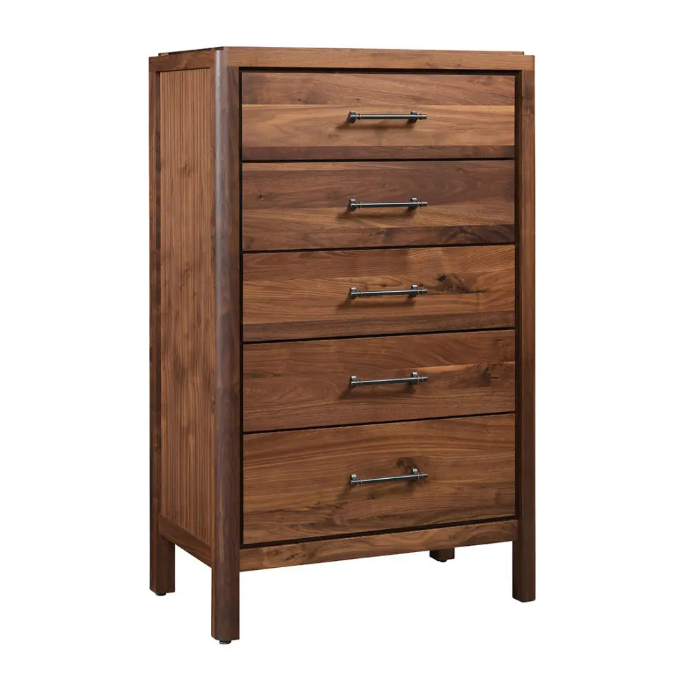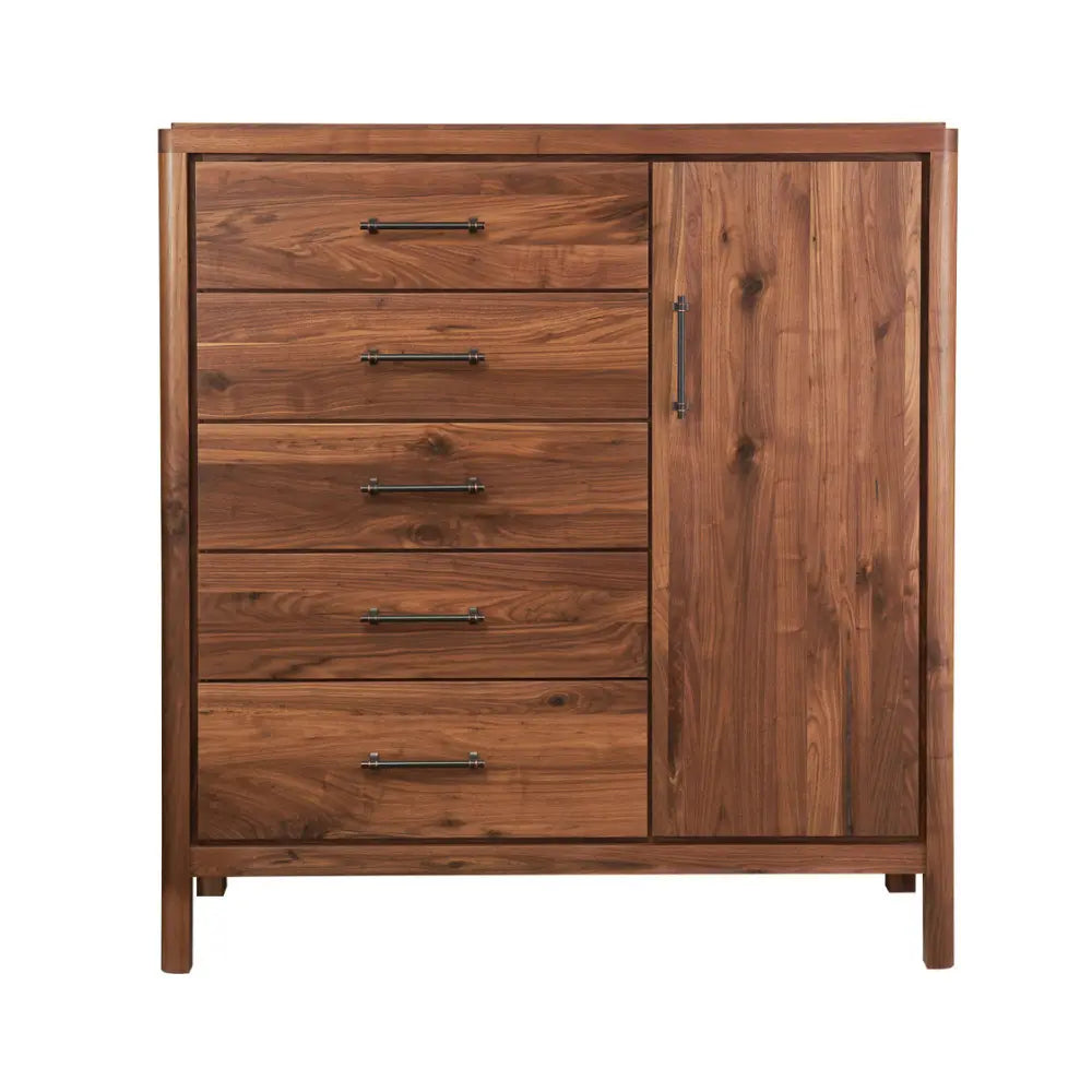Our Lena, is a handcrafted, rustic walnut chest drawer with smooth pulls and gorgeous modern design. Options include a tall chest or a Gentleman's chest with a cabinet.