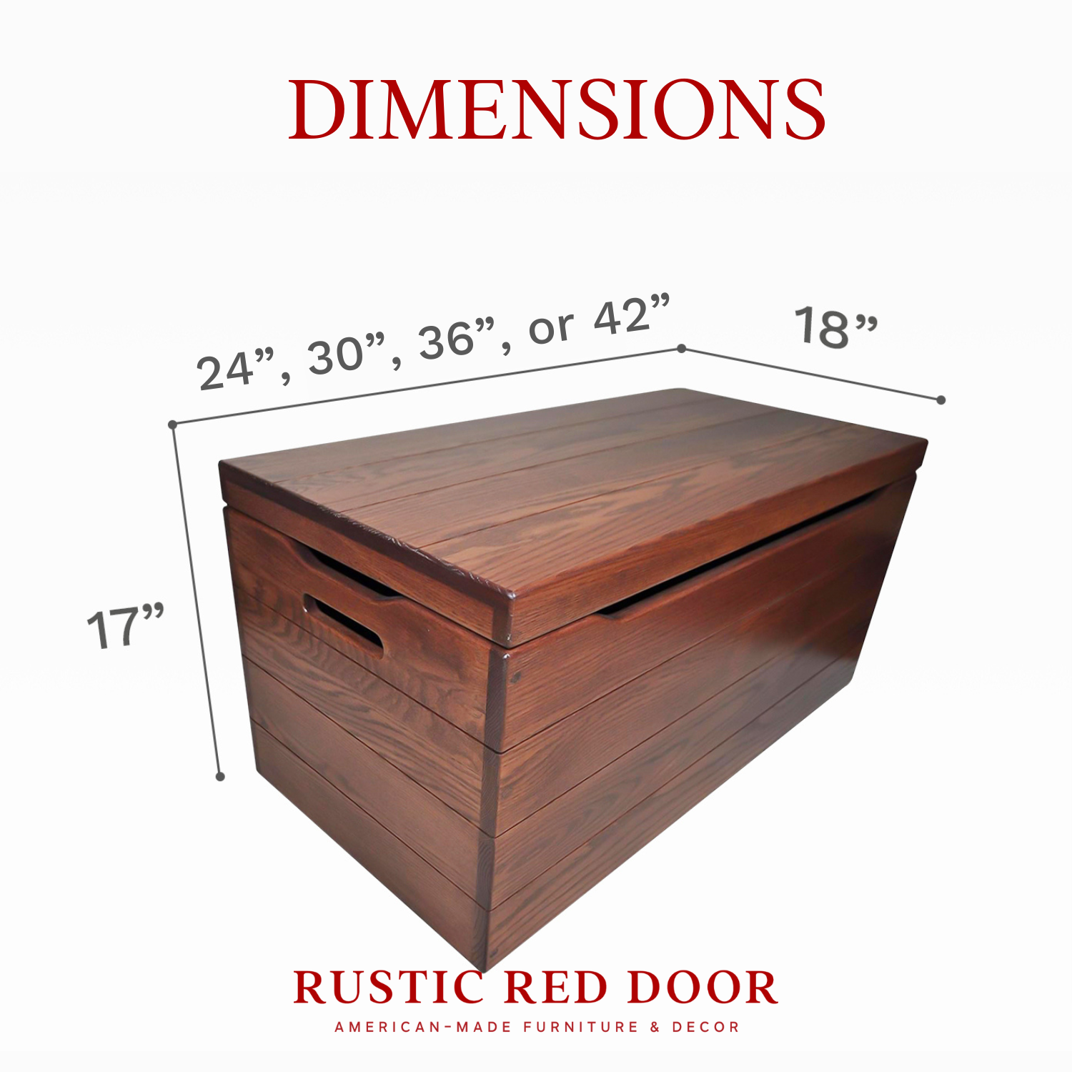 Oak is an excellent wood choice for fine rustic furniture and decor because of the beautiful and natural details found in the grain. Finishing this quality oak wood in Washington Cherry Stain makes it a favored choice among blanket chests and a handsome, heirloom-quality storage piece! The three lid cutouts assist in opening and closing the lid while the anti-slam hinges help keep little hands from being injured.