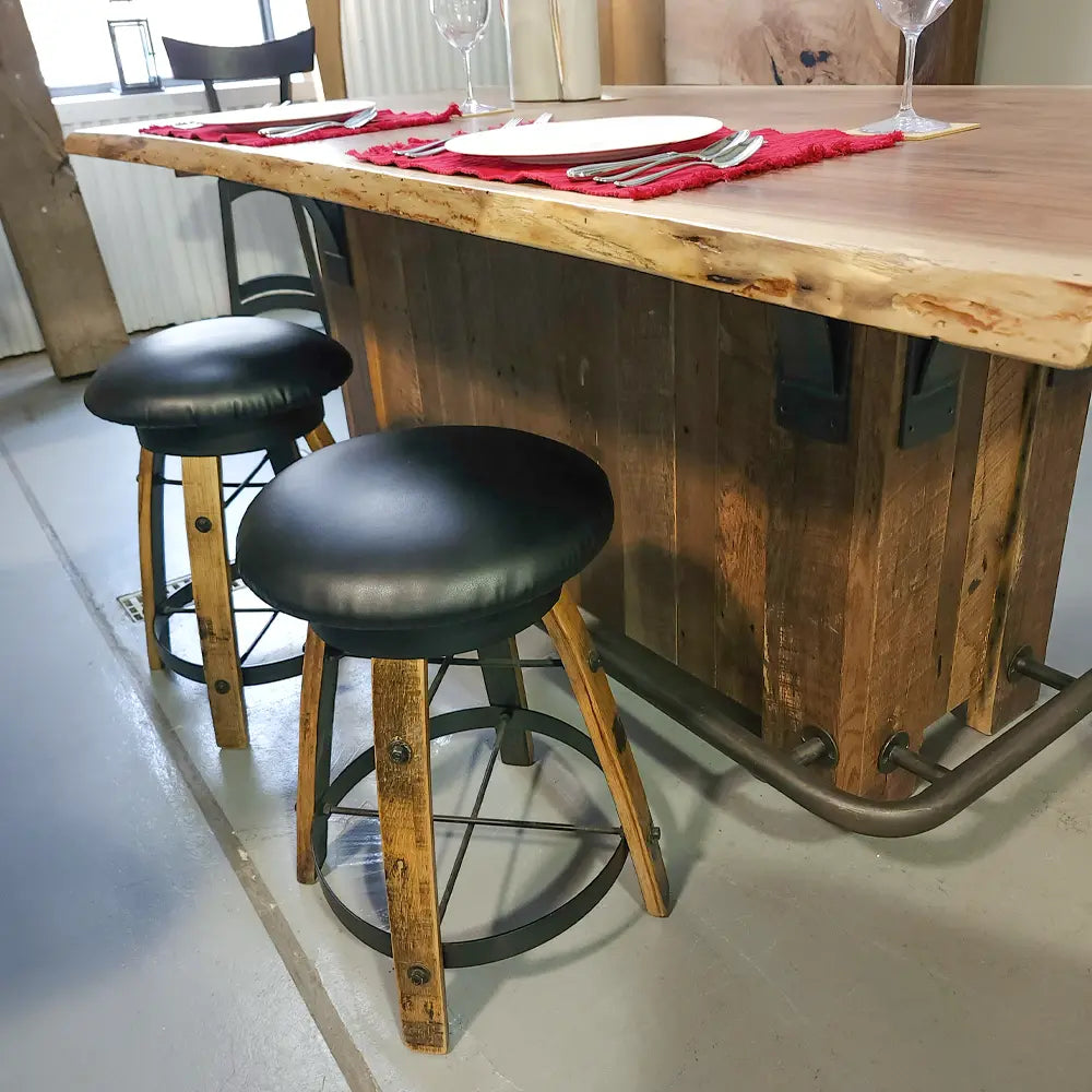 For a look at our intriguing and finely handcrafted barrel tables, visit our pub tables page. Different stool designs like Mission-Style, Island, and reclaimed wood may be seen on our collection of pub furniture. Live edge maple, walnut, and spalted sycamore slabs as well as plank-style reclaimed wood tabletops are part of this collection of quality furniture.